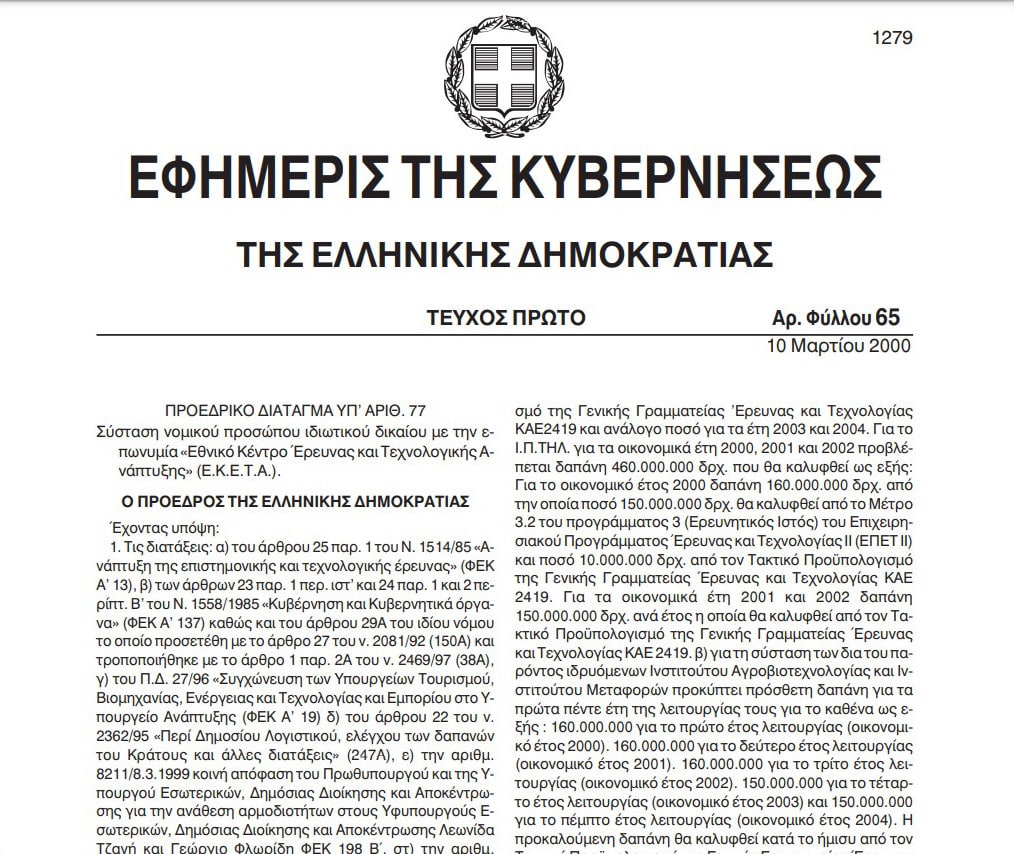 Με την έγκριση του κτιριολογικού προγράμματος και τη δημοσίευση του Προεδρικού Διατάγματος για το τοπικό ρυμοτομικό σχέδιο, ανοίγει ο δρόμος για την ανέγερση των νέων Ινστιτούτων του ΕΚΕΤΑ.